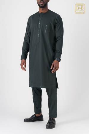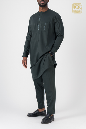 Ensemble 2 pièces réalisé sur mesure, composé d’une tunique longue et d’un pantalon assorti, avec finition brodée discrète sur le devant. Confortable et élégant, idéal pour les cérémonies et occasions spéciales.