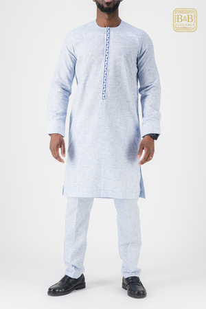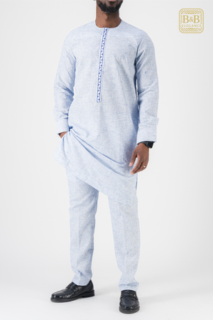 Ensemble 3 pièces réalisé sur mesure, composé d’une tunique longue, d’un pantalon assorti et d’un boubou léger, avec broderies discrètes sur le devant. Confortable et élégant, idéal pour les cérémonies et occasions spéciales.